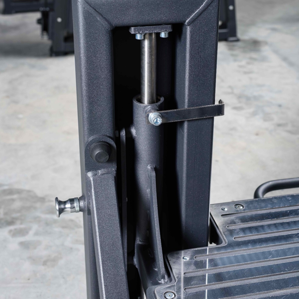 Платформа для ног выполнена цельной, горизонтальной, оснащена двумя металлическими пластинами с рифлёной поверхностью для повышения сцепления и защиты рабочей зоны от износа.