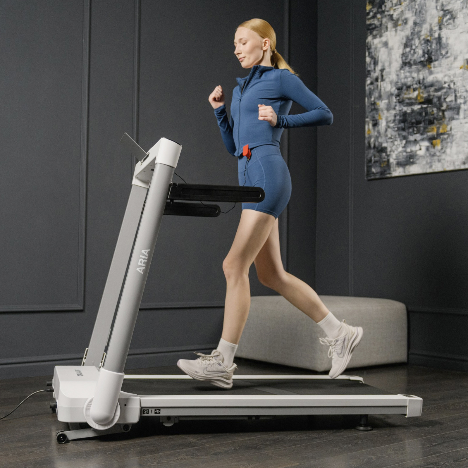 Мощный двигатель Hartvoll™ 2,75 л.с. обеспечивает невероятно плавный и стабильный разгон в широком диапазоне скоростей от 1 до 16 км/ч, что позволяет с одинаковым комфортом заниматься как спокойной ходьбой, так и интенсивным бегом. При этом после тренировки дорожка легко превращается в компактный предмет интерьера — благодаря особой системе складывания и вертикального хранения она занимает всего 25 см в толщину, органично вписываясь даже в самое ограниченное пространство.