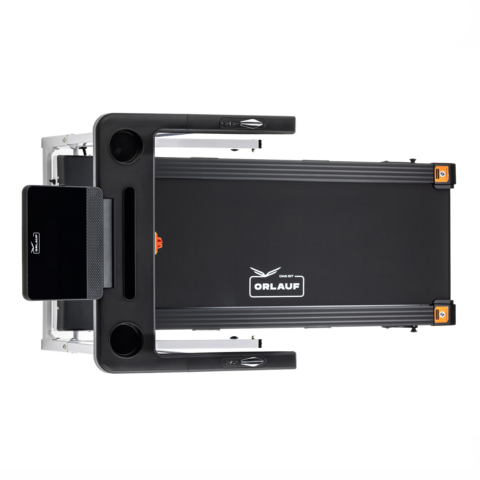 Все показатели тренировки отображаются на LED-дисплее, у которого можно менять угол наклона. Перед дисплеем предусмотрено место для смартфона. Под дисплеем располагается понятная сенсорная консоль с кнопками настройки тренировок, а также обычными и быстрыми кнопками изменения скорости. На поручнях расположены сенсорные датчики пульса и дублирующие кнопки скорости и запуска тренировки.
