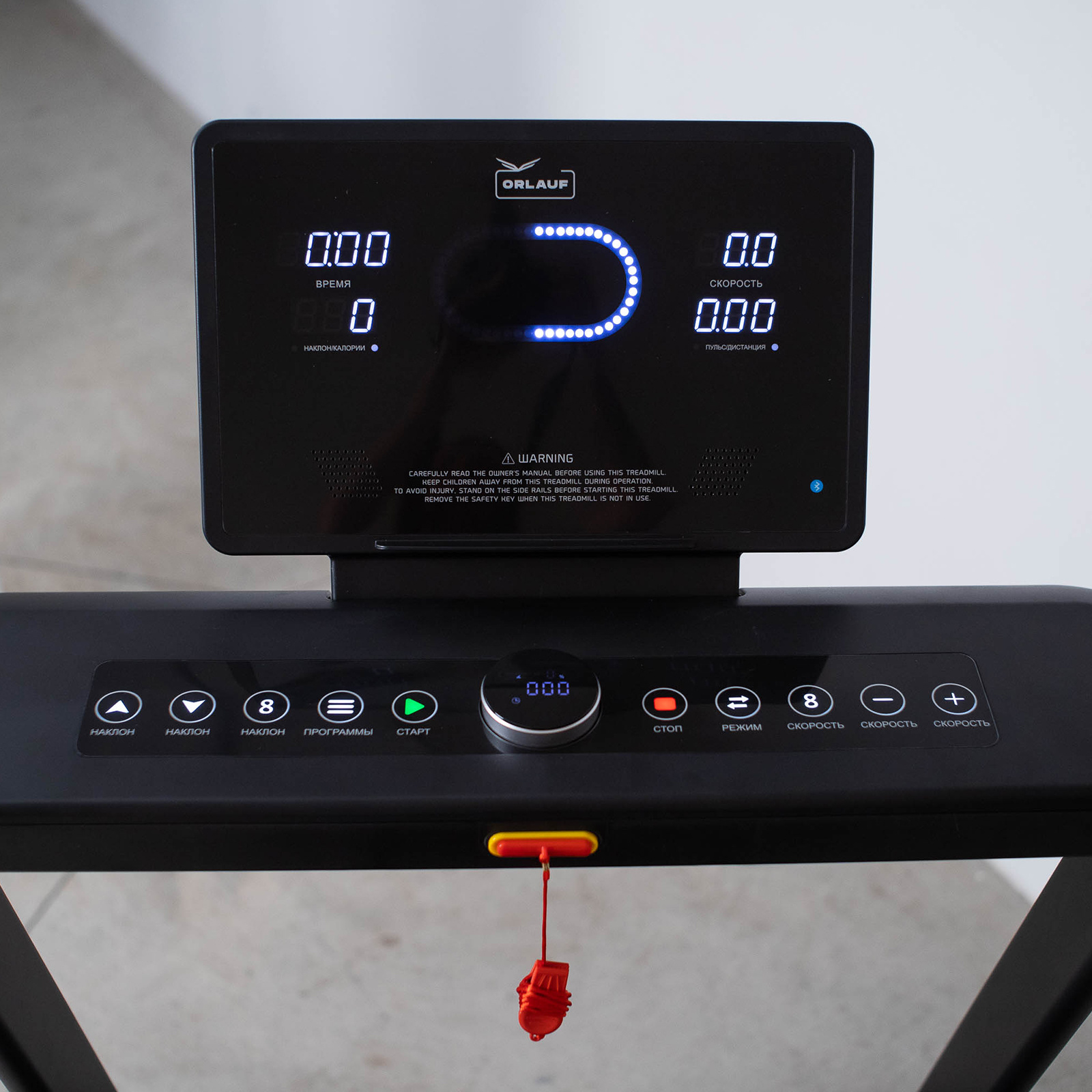 Показания дисплея: время, скорость, расстояние, калории, пульс
