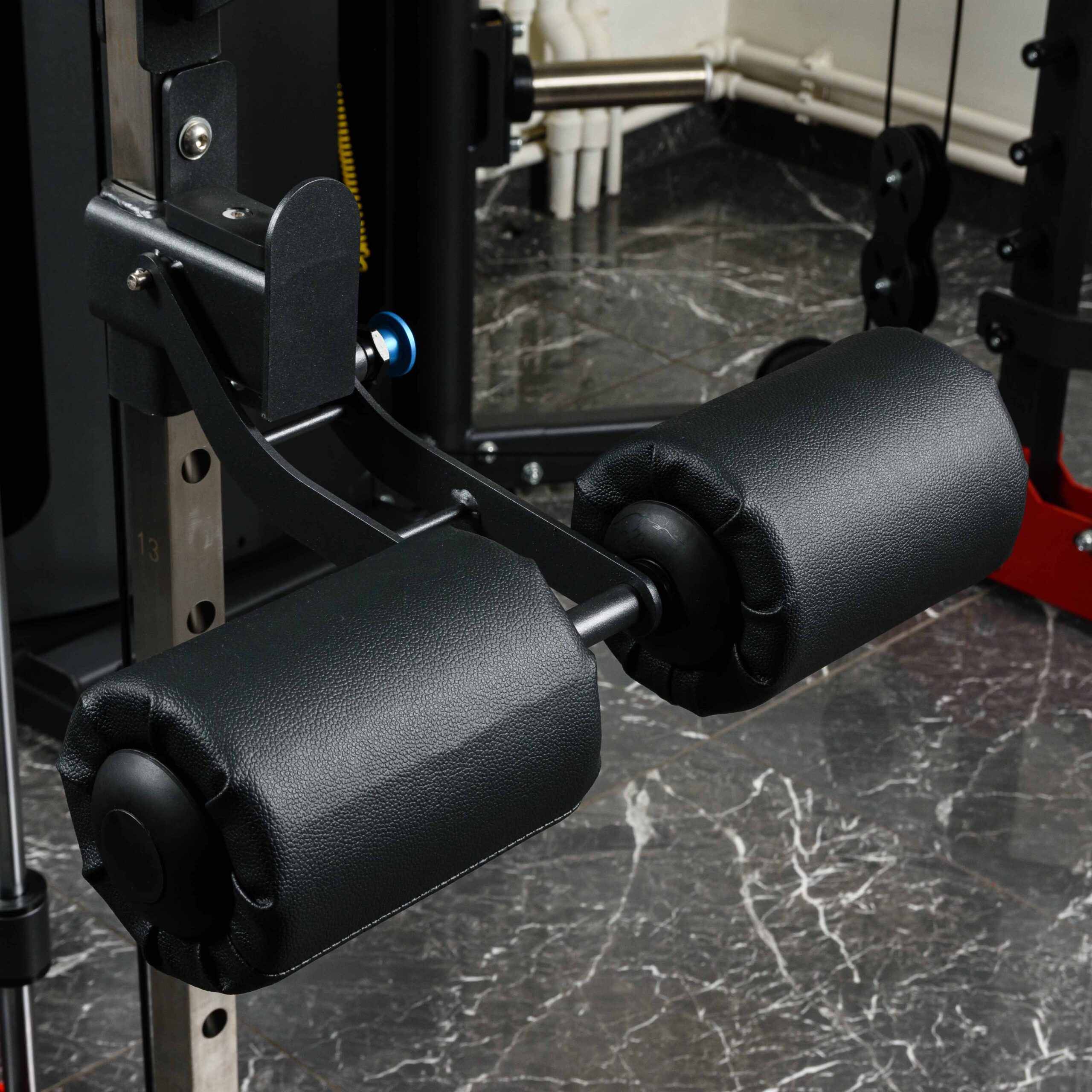 Высота грифа на машине Смита регулируется в 17 положениях по высоте благодаря упорам.