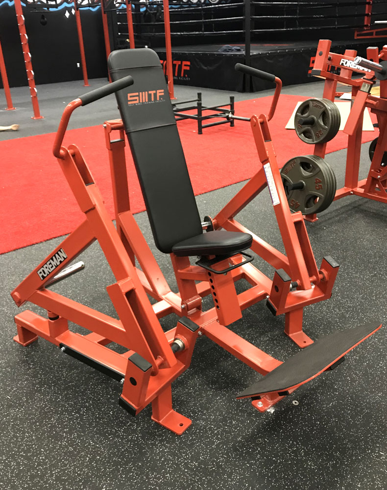 Нагружаемый дисками тренажер «Жим от груди» предназначен для выполнения упражнений на развитие больших мышц груди с включением в работу трицепса и передних дельт. Выполняемое движение: жим от груди.