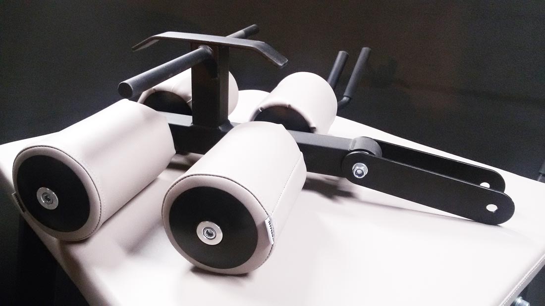 - Возможность быстрой установки регулируемых валиков для ног, вместо ремней (опционно).