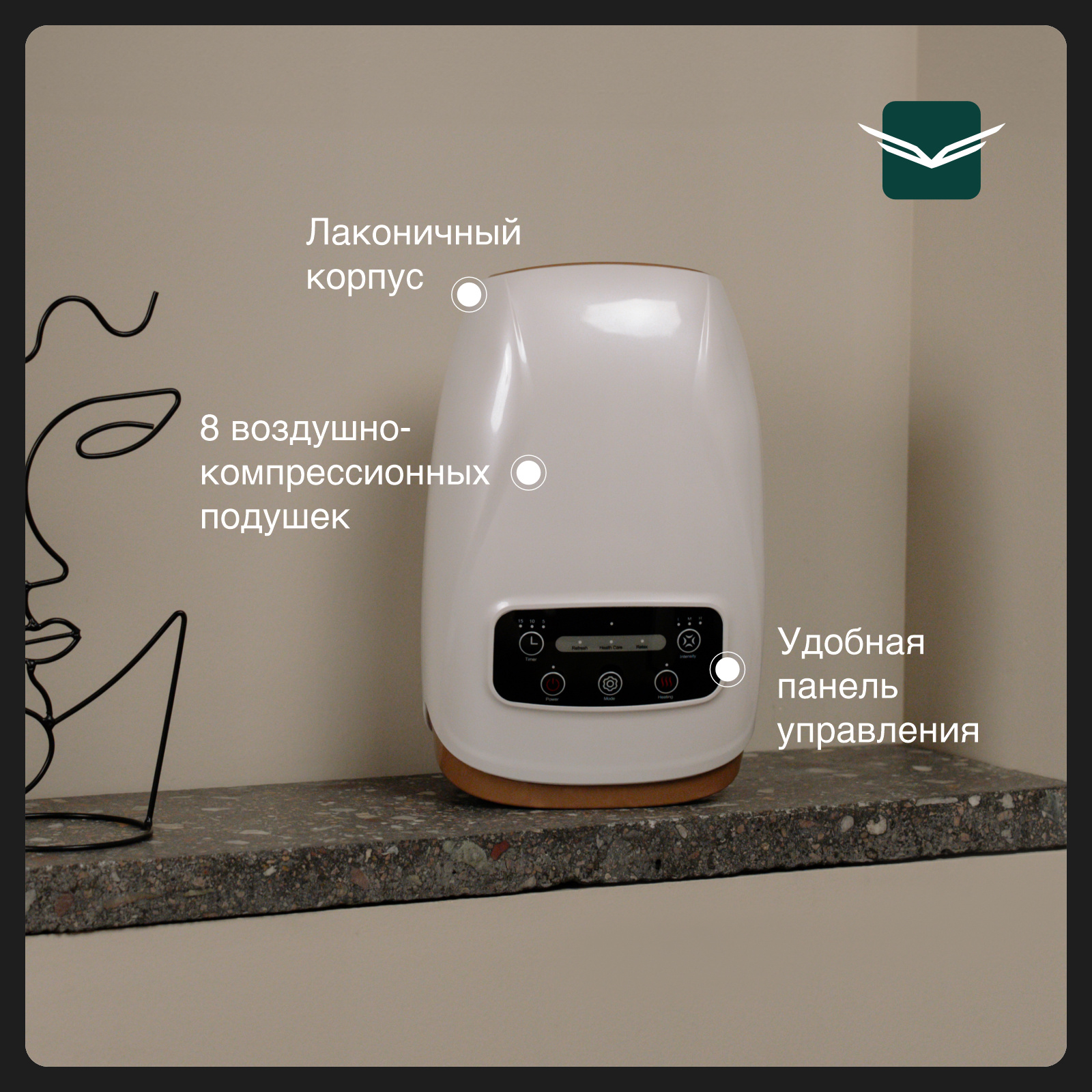 Дополняет воздушно-компрессионный массаж функция прогрева. Прогрев усиливает расслабляющий эффект и возвращает рукам легкость.