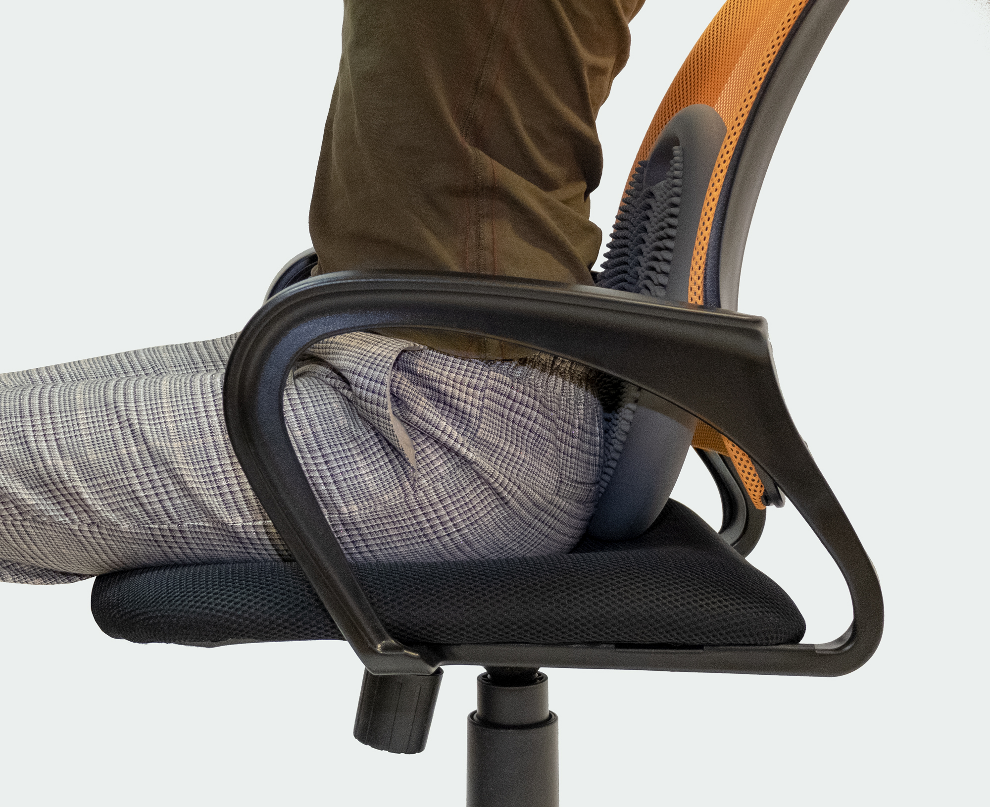 - Балансировочная подушка OFT помогает держать позвоночник прямо, снижает нагрузку на спину и предотвращает развитие дискомфорта при длительной сидячей работе.