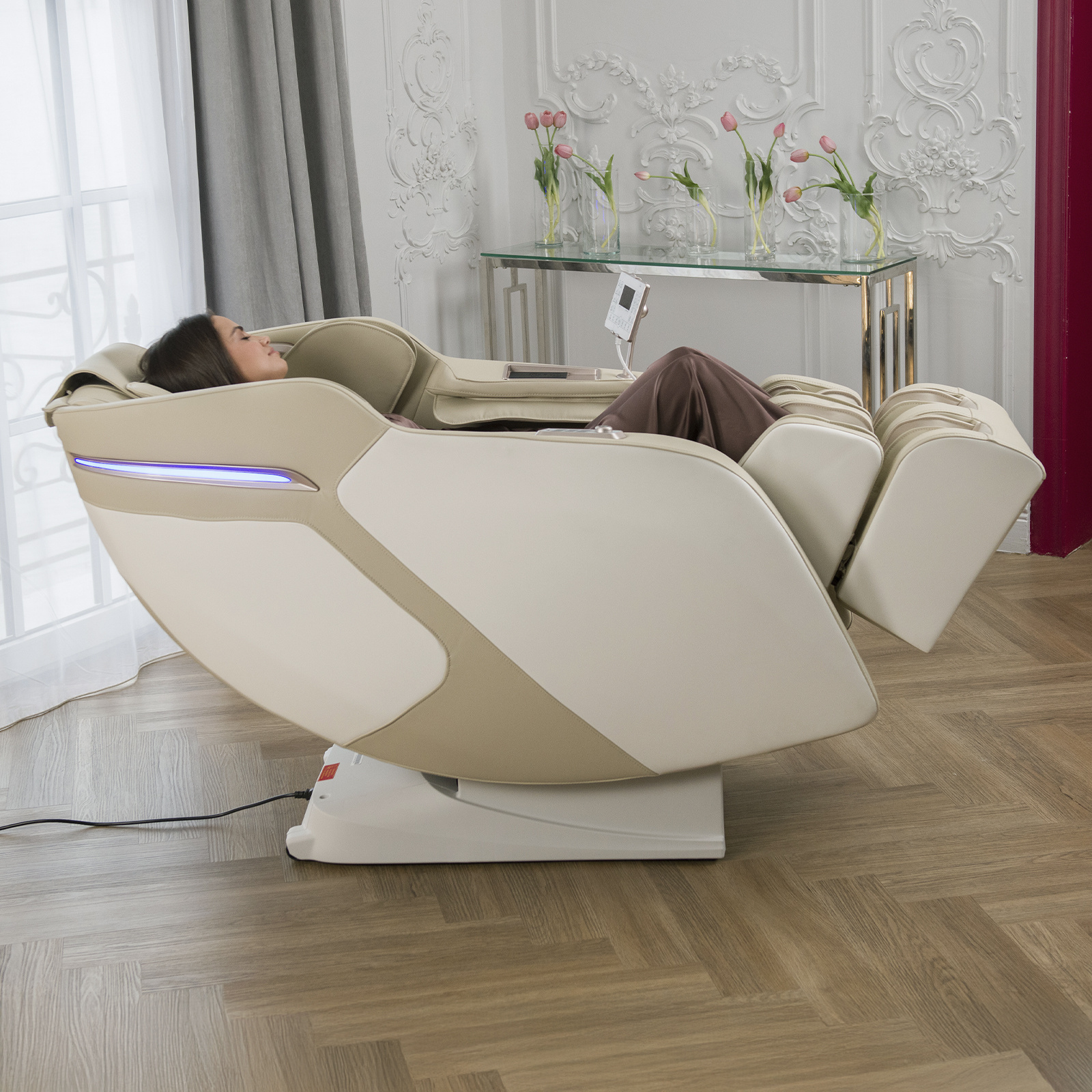 Электрическое массажное кресло для дома Orlauf Jazz сочетает в себе продвинутую систему роликового и воздушно-компрессионного массажа. Модель предлагает профессиональный уровень массажа с широкими возможностями персонализации.