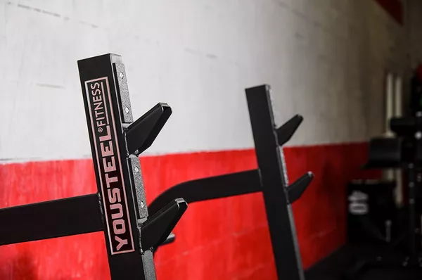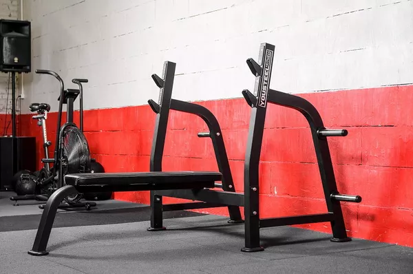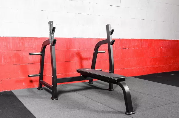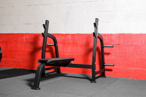 Мощная, устойчивая горизонтальная олимпийская скамья для жима лежа.