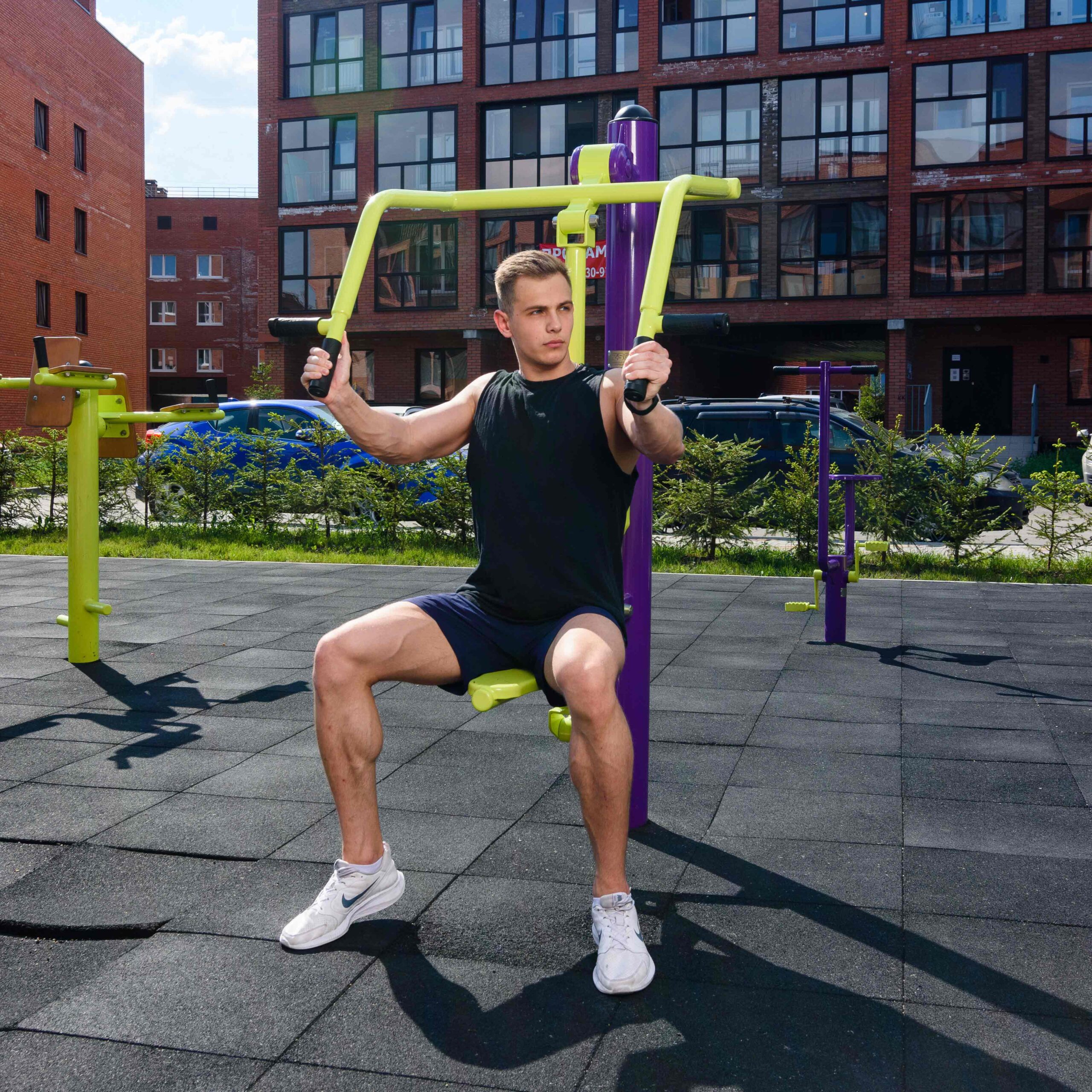 Уличный тренажер Жим от груди ZAVODSPORTA* предназначен для установки на уличных спортивных площадках с учетом интенсивной эксплуатации в разных климатических условиях.