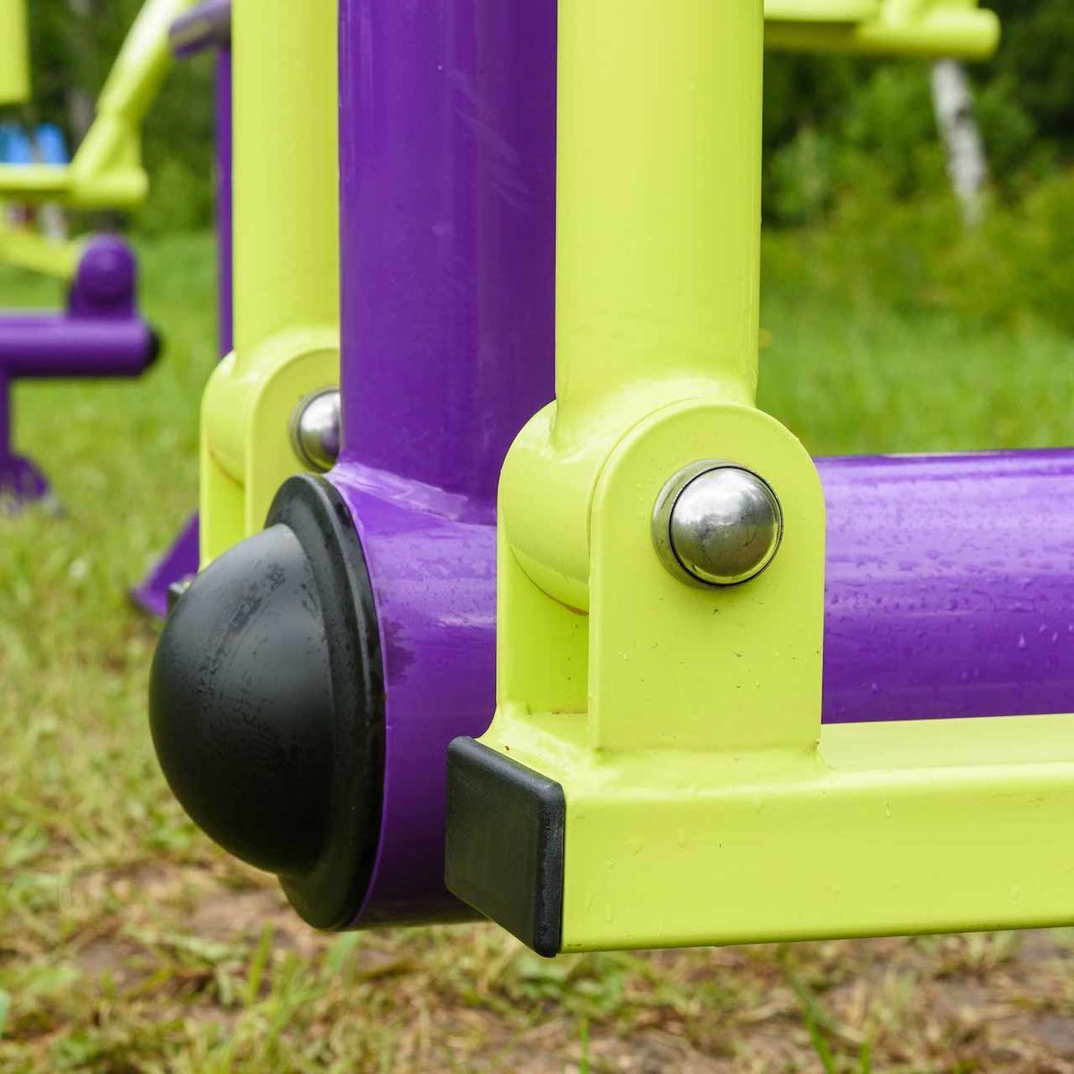Торцы опорного столба и вспомогательных элементов оборудованы пластиковыми заглушками.