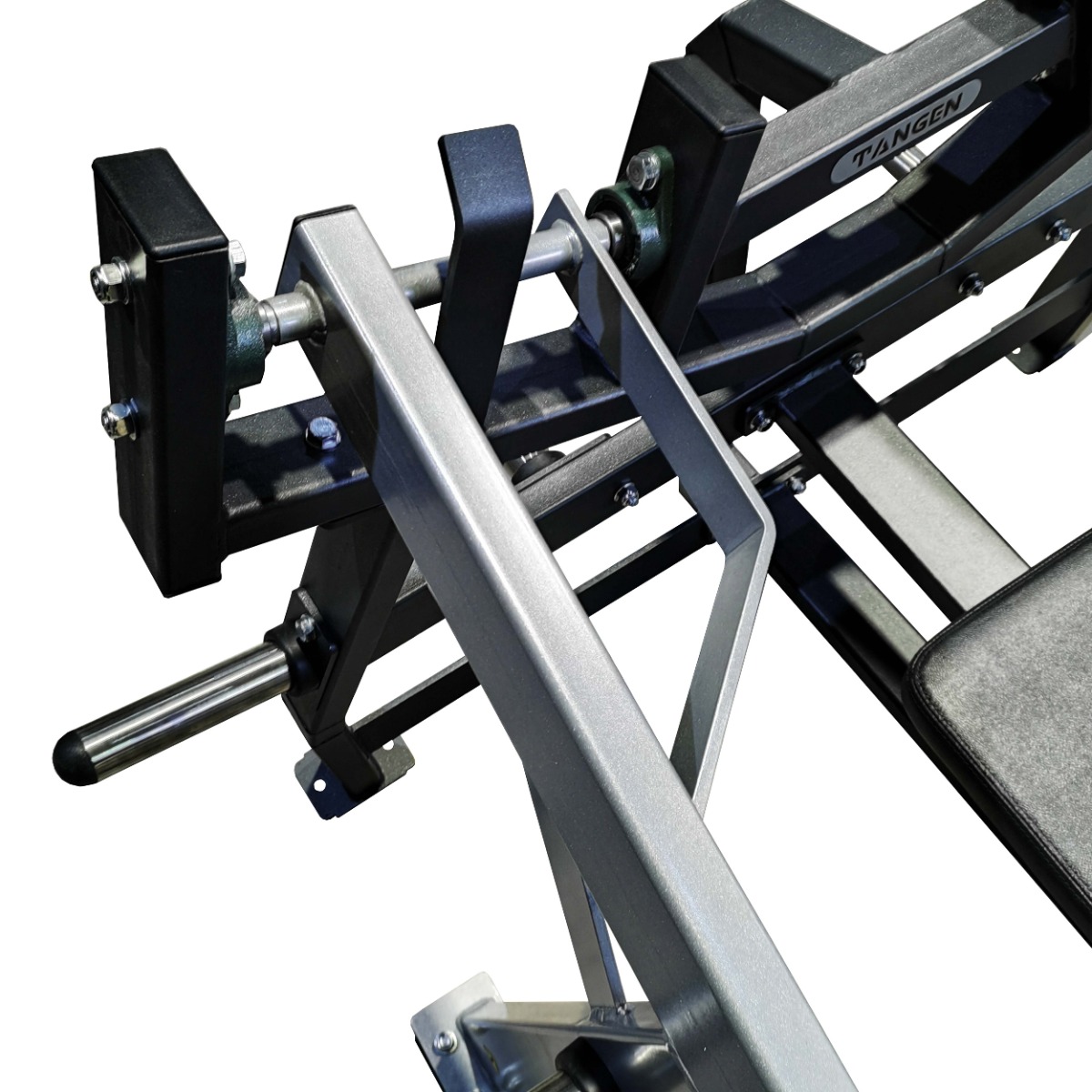Два хромированных накопителя на подвижных рычагах и четыре хромированных накопителя для хранения свободных весов на раме тренажера изготовлены из толстостенной стальной трубы. На торцах накопителей установлены заглушки из пластика.