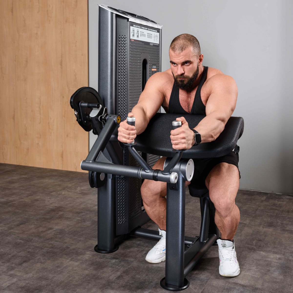 Профессиональный тренажер для коммерческого использования U2028 Трицепс-машина сидя. Наклонная парта предназначен для изолирующего упражнения на трицепс в исходном положении тела с наклоном вперед.