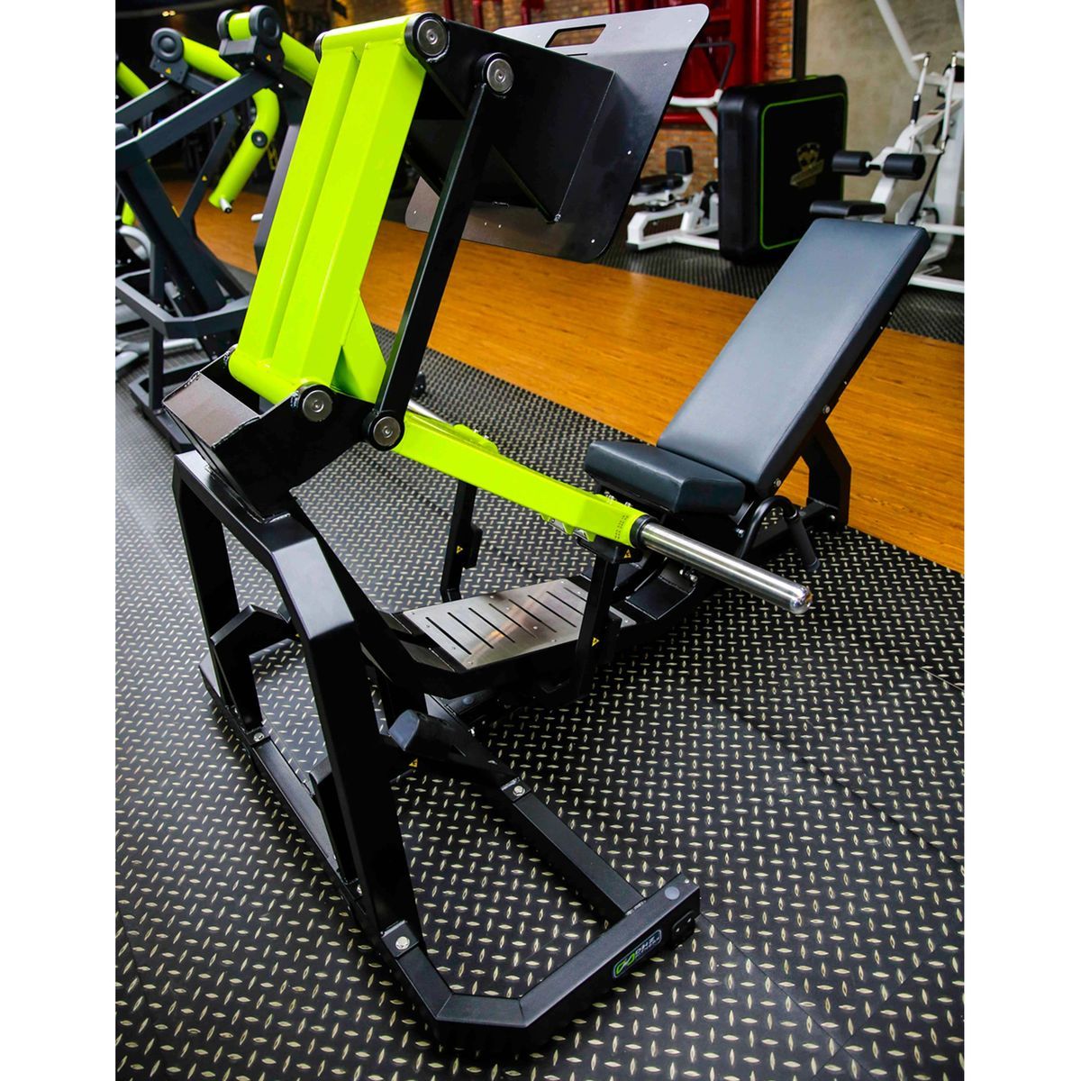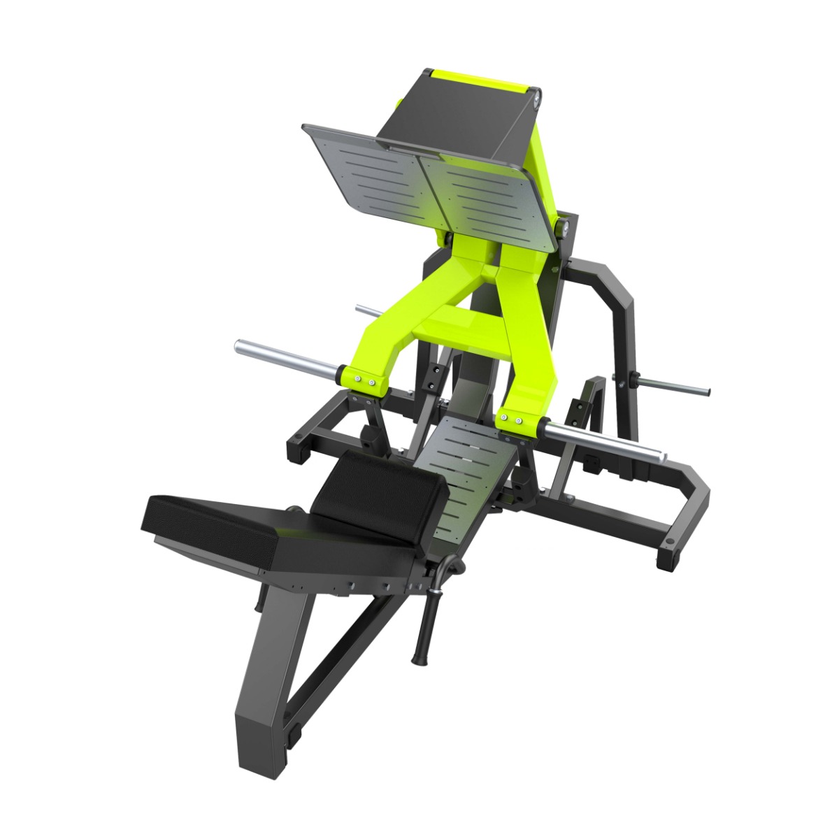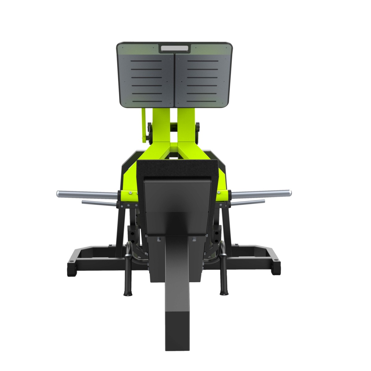 Платформа для толчка (размер: 690×495 мм) выполнена из металлического основания и оснащена двумя накладками из нержавеющей стали (размер каждой: 323×478 мм), закреплёнными болтовым соединением. Поверхность устойчива к износу и обеспечивает надёжное сцепление стоп во время выполнения упражнения.