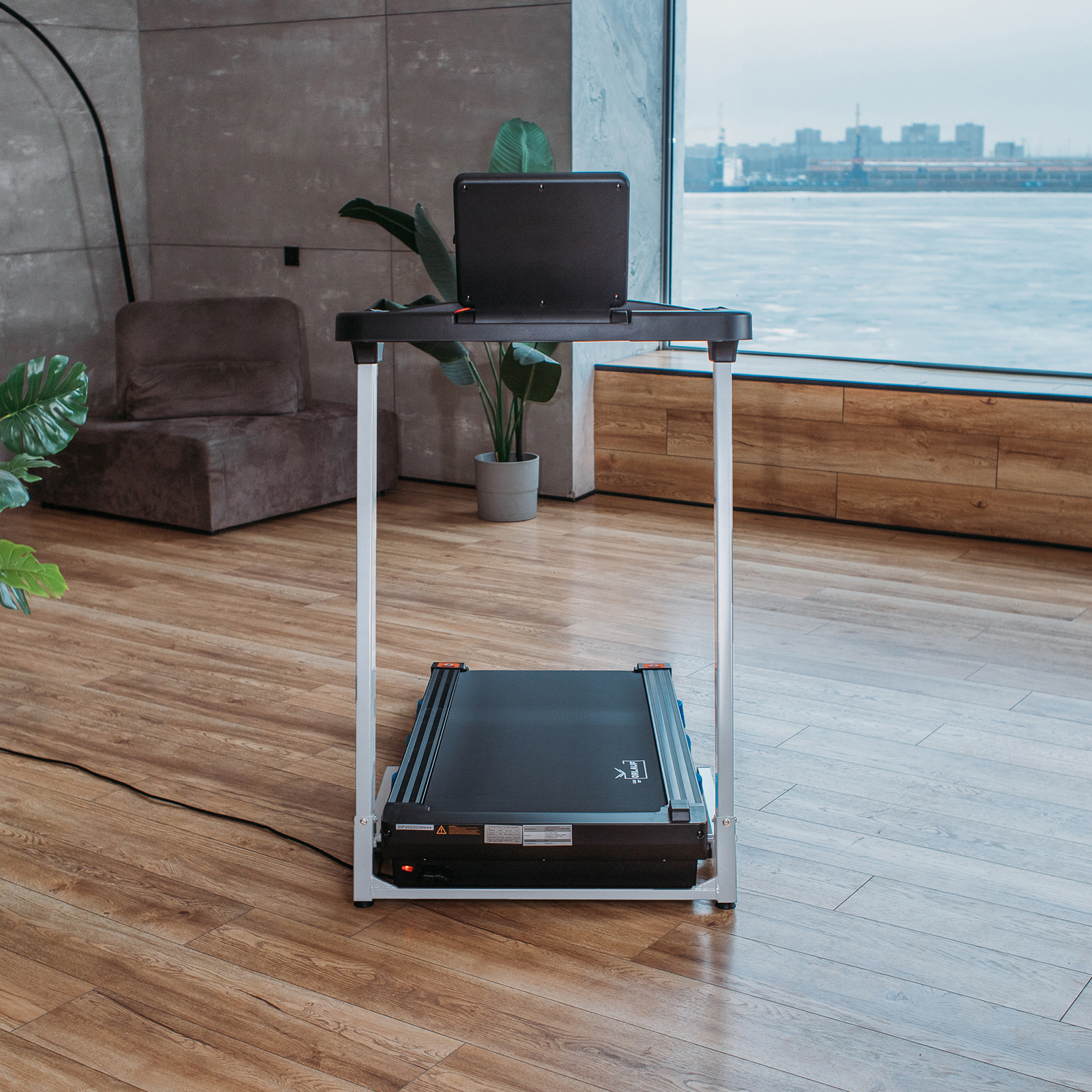 У дорожки необычное расположение моторного отсека — он находится не перед, а под беговым полотном. За счет этого длина тренажера значительно сократилась.