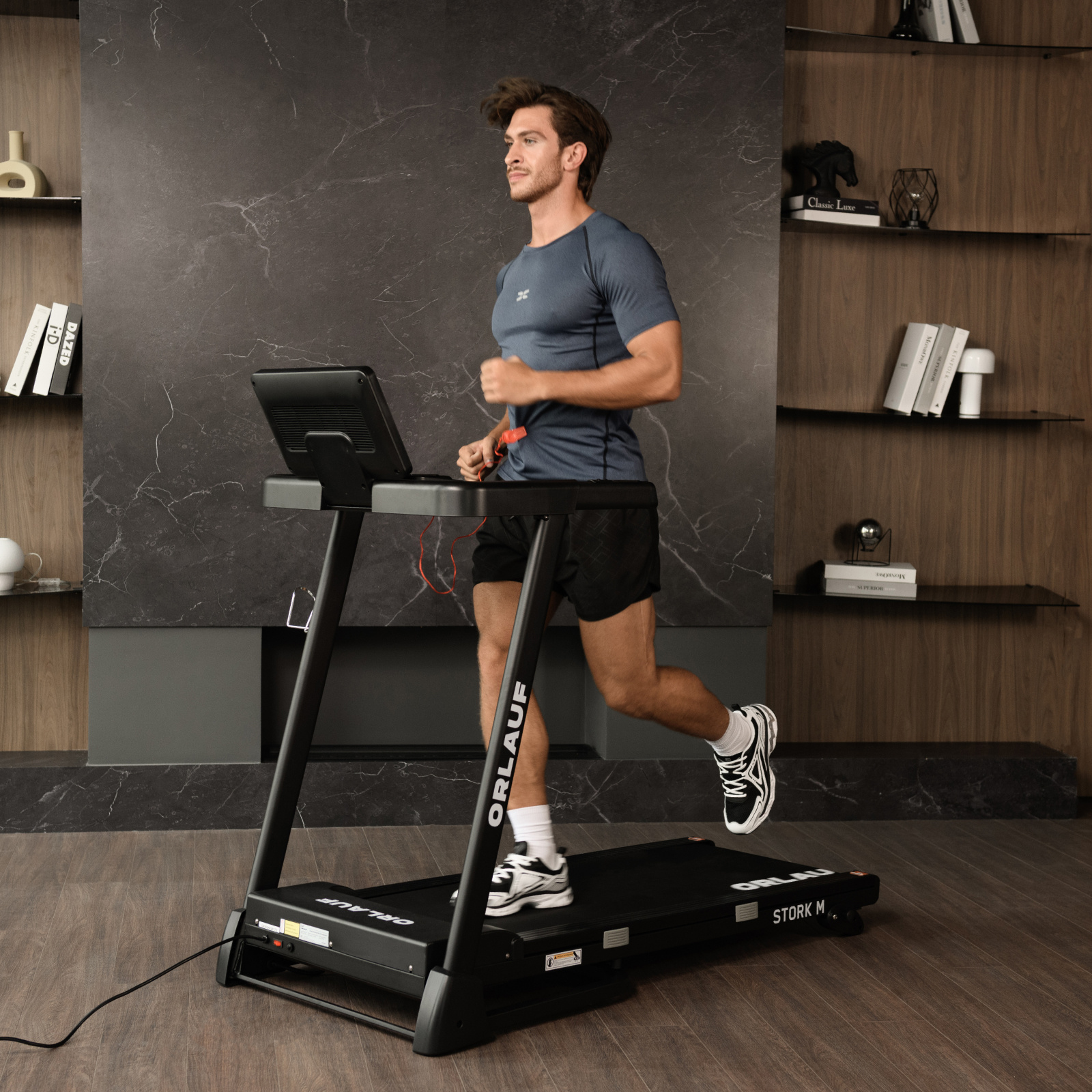Электрическая беговая дорожка Orlauf Stork M открывает новый уровень домашних тренировок, сочетая эффективность, комфорт и безупречное качество. Модель отличается инновационной горизонтальной системой складывания с газлифтом Raiser™, которая обеспечивает легкое и безопасное преобразование тренажера в компактную форму.