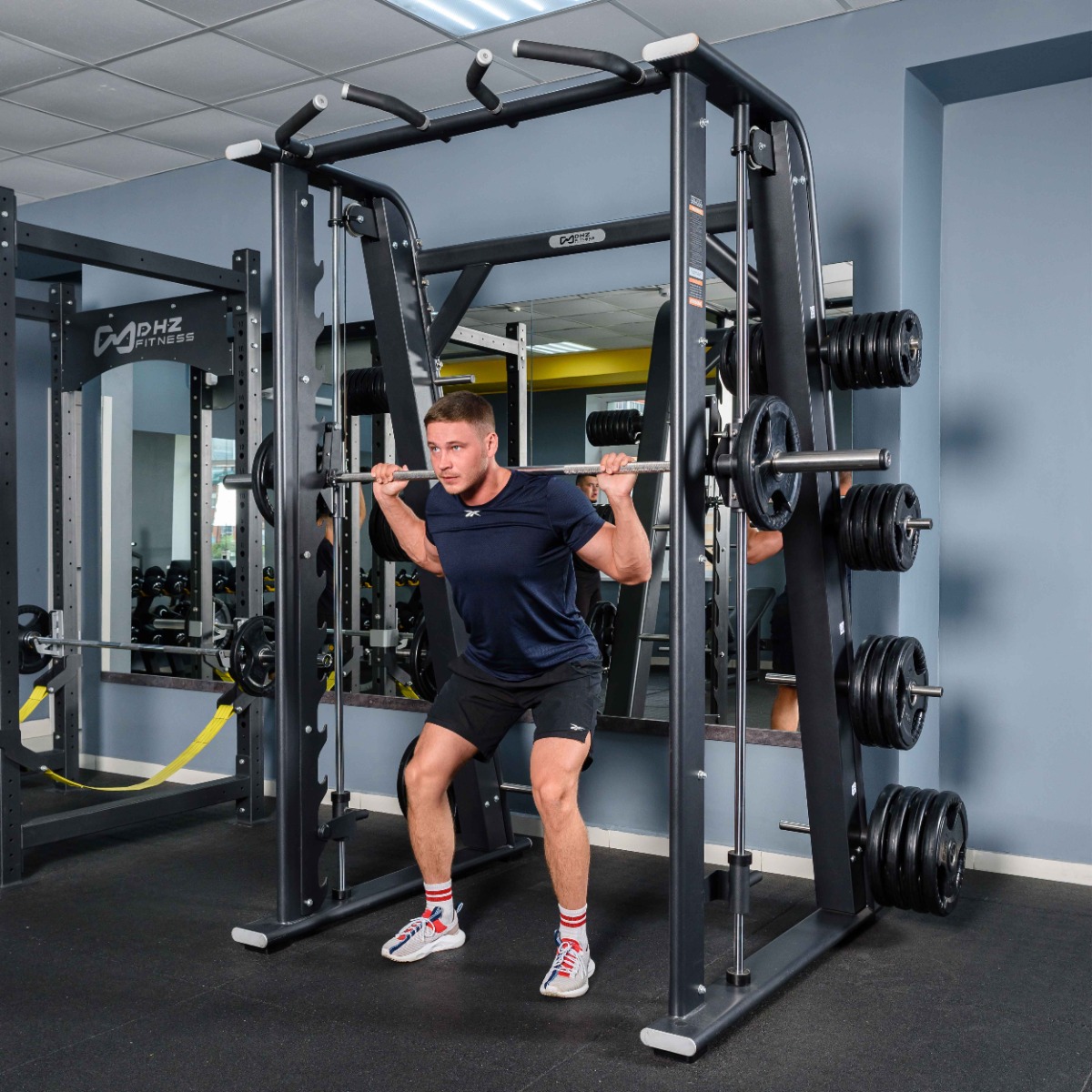 Профессиональный многофункциональный тренажер для коммерческого использования E7063 Машина Смита предназначен для проработки мышц всего тела.