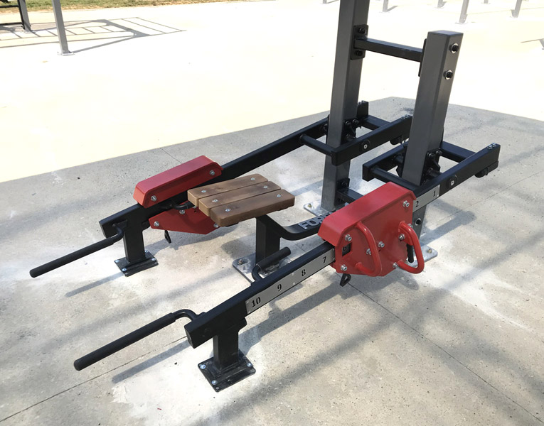 Уличный тренажер FO-08 предназначен для выполнения ряда упражнений: становая тяга, шраги, выпады, жимовой швунг, тяга одной рукой, тяга в наклоне, жим от груди, приседания с отягощением.