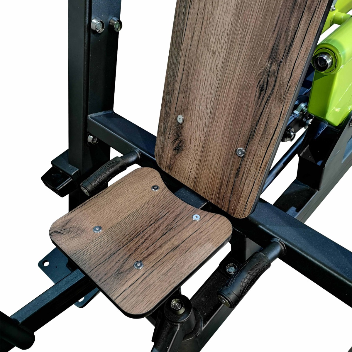 Спинка 900×300 мм и сиденье тренажера 300×290 мм выполнены из высокопрочного ударостойкого HPL-пластика толщиной 12 мм. Угол наклона спинки 25°, угол наклона сиденья 10°.
