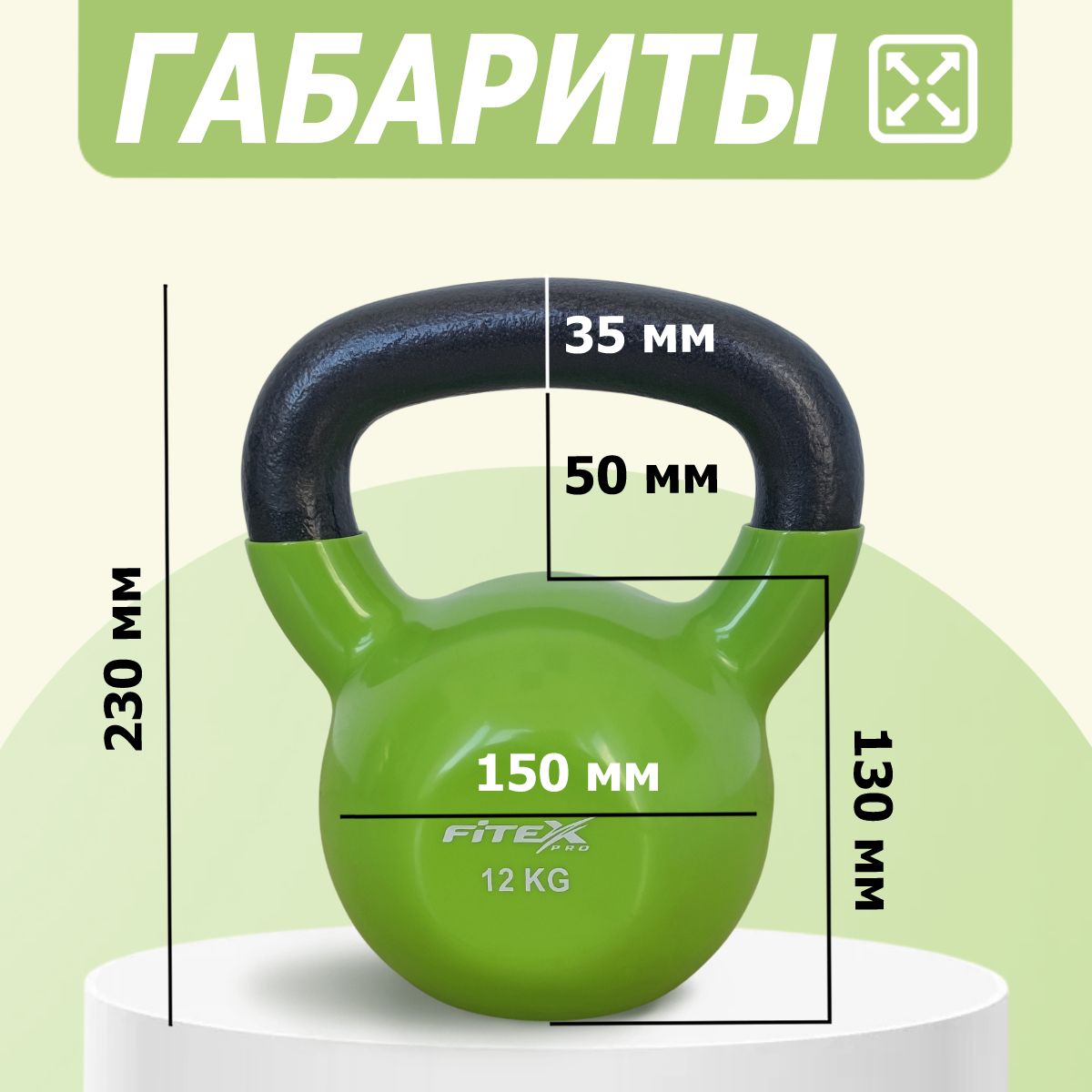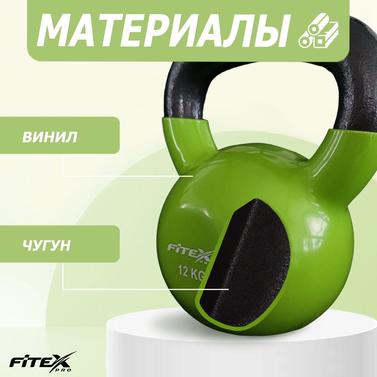 Гиря FITEX PRO сделана из чугуна и имеет плотное виниловое покрытие, которое не окрашивает стены и пол, снизит шум и убережет кожу рук от раздражения.