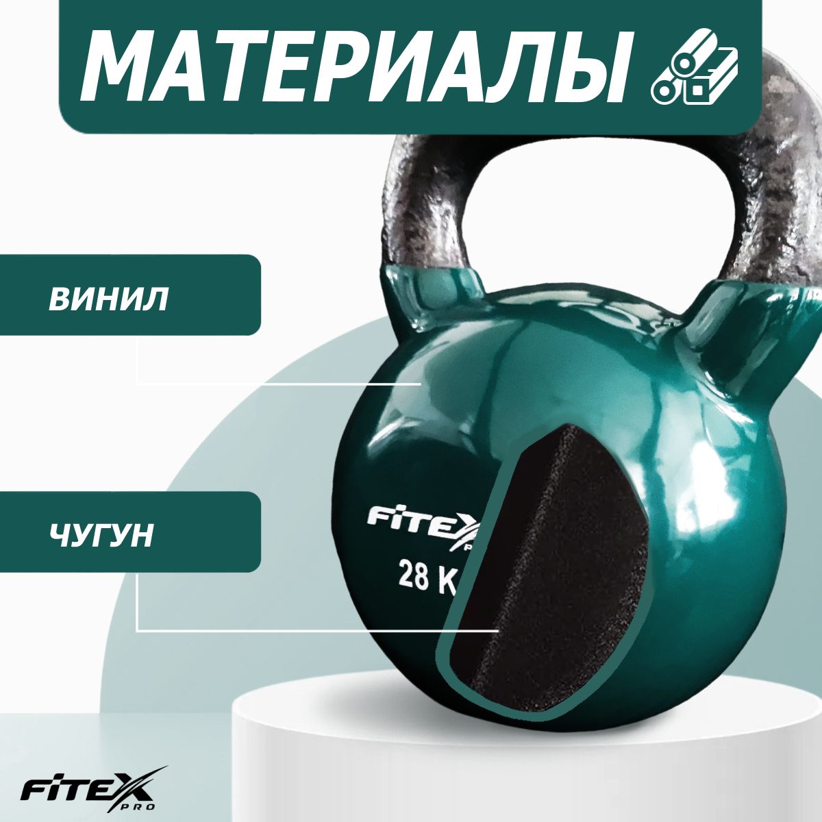 Гиря FITEX PRO сделана из чугуна и имеет плотное виниловое покрытие, которое не окрашивает стены и пол, снизит шум и убережет кожу рук от раздражения.