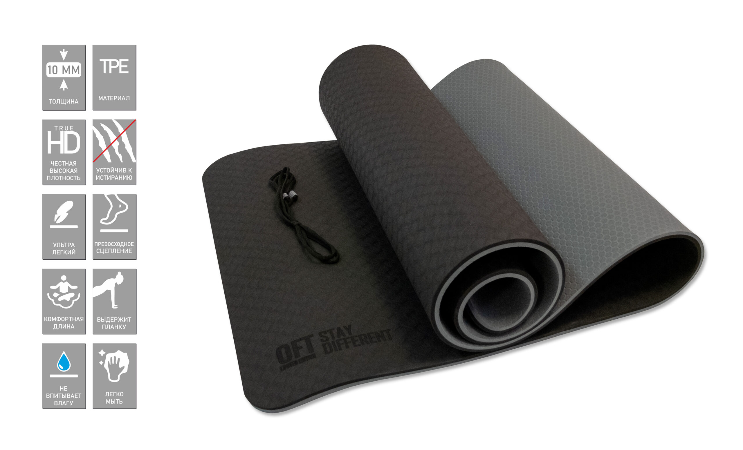 Упругость термопластичного эластомера поможет вам сохранять устойчивость и уверенность в асанах или статических позах.