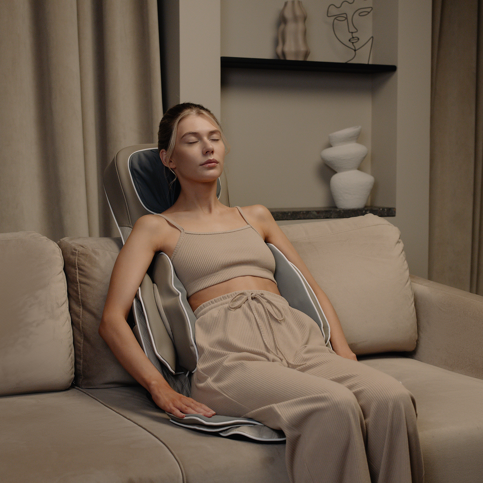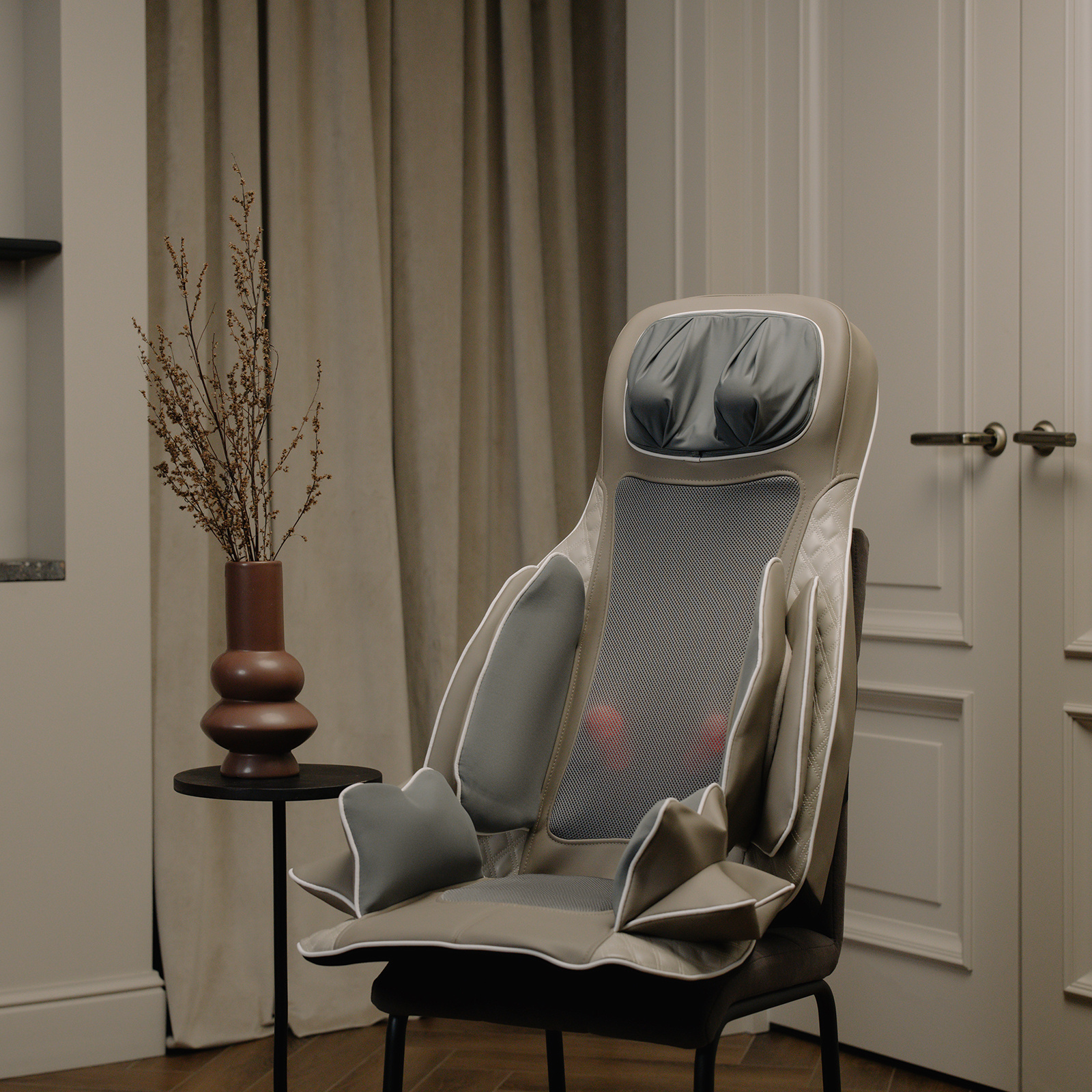 Функция прогрева роликов в области шеи и спины позволит глубже и быстрее расслабить мышцы.
