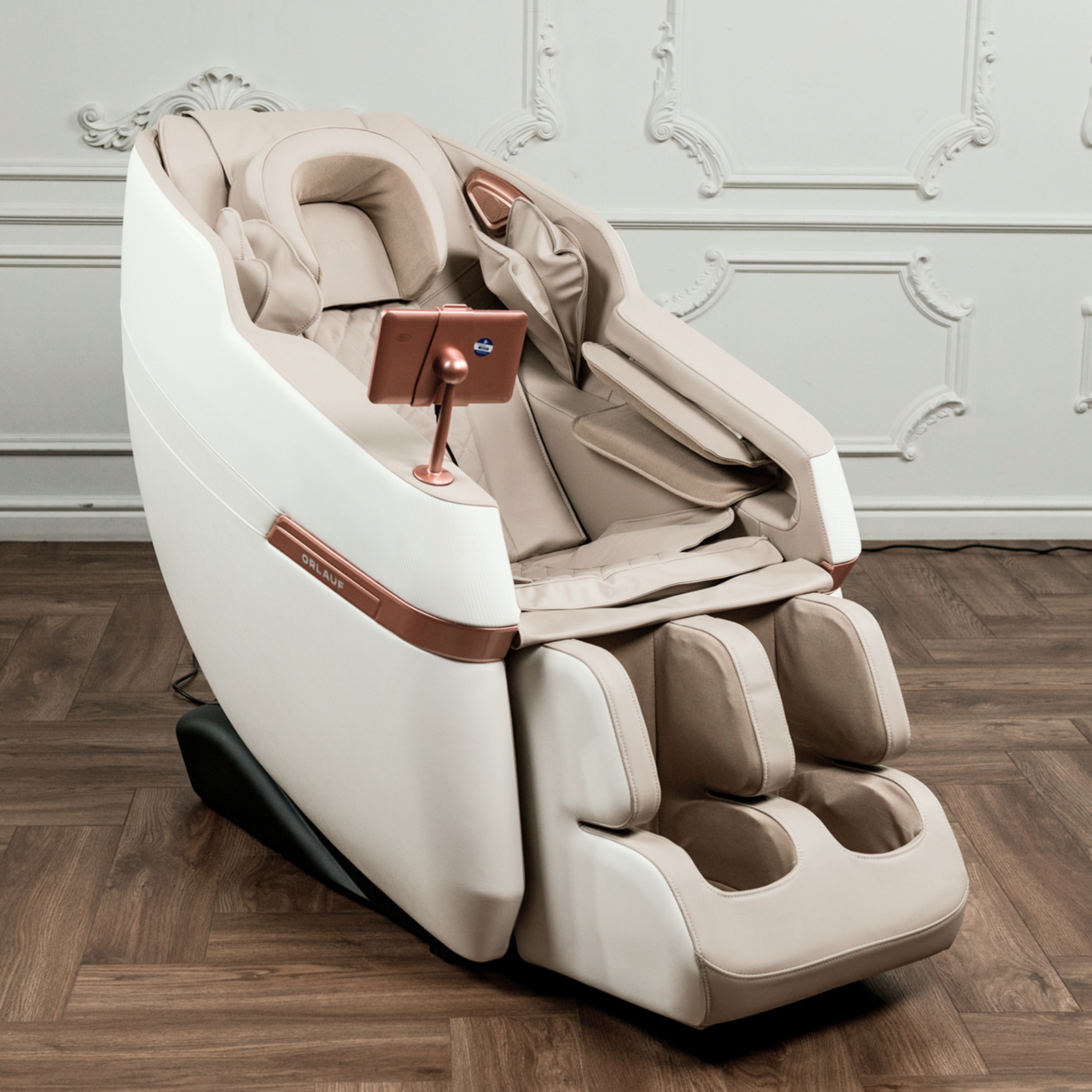 Orlauf Chase оснащено 22 роликами в спине, которые обеспечивают глубокий и точечный массаж, и 24 роликами для ног с акупунктурными точками. Такая конструкция помогает улучшить кровообращение и снять мышечное напряжение. Воздушно-компрессионный массаж осуществляется с помощью 20 подушек, которые воздействуют на разные участки тела: от шеи и плеч до ступней. Это способствует расслаблению и лимфодренажу.