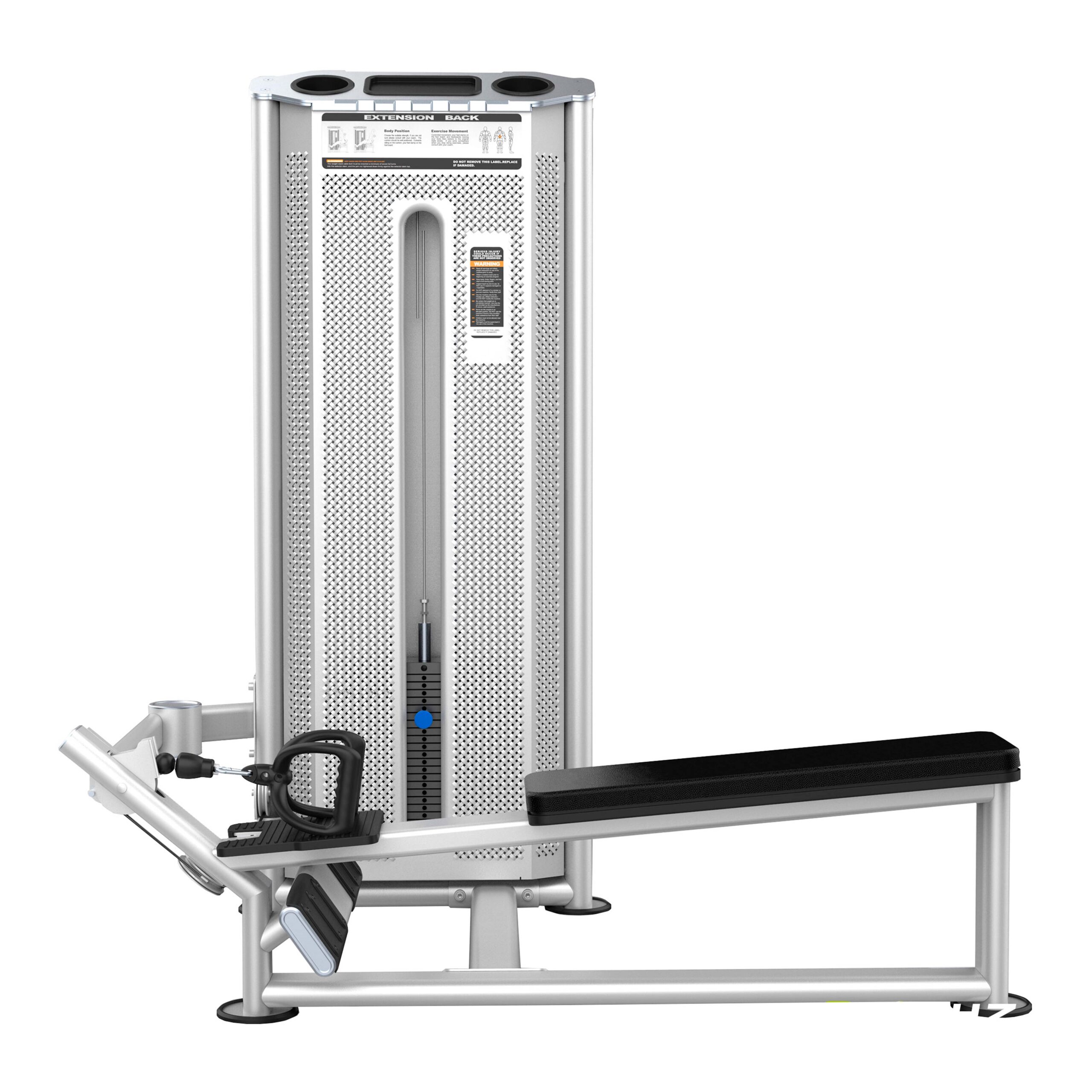 Металлическая перфорированная защита весового стека с лицевой стороны и сплошная защита с задней стороны выполнена из листового металла толщиной 2 мм. Ребра жесткости у основания, примыкающие к несущей раме через скрытое болтовое соединение сечением 6 мм в восьми точках, повышают эксплуатационные параметры тренажера.
