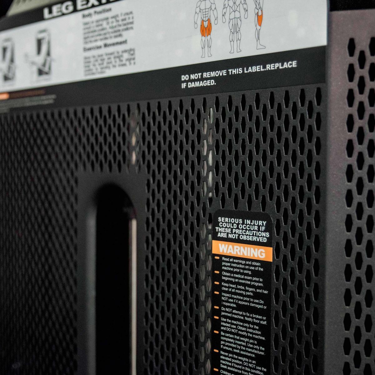 Металлическая, перфорированная защита весового стека с обеих сторон, выполнена из листового метала толщиной 2мм, с ребрами жесткости у основания, примыкает к несущей раме через скрытое болтовое соединение сечением 6мм в 8 точках, что повышает эстетические и эксплуатационные параметры тренажера.