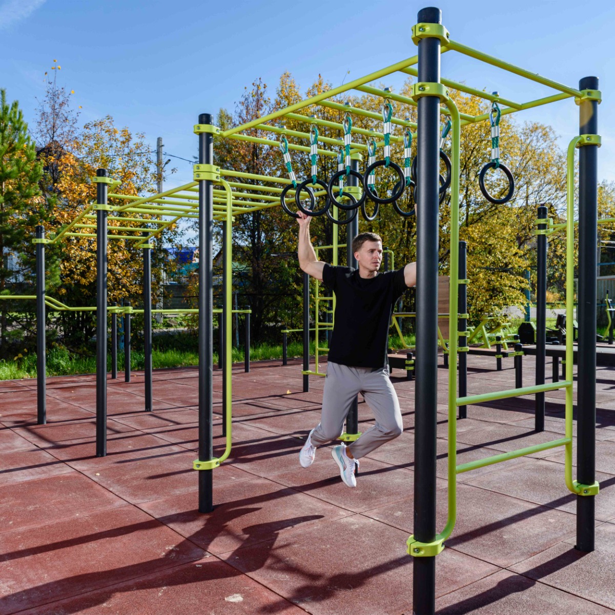 Уличный Рукоход с изменением высоты с подвижными кольцами (разноуровневый) ZAVODSPORTA* предназначен для установки на уличных спортивных площадках с учетом интенсивной эксплуатации в разных климатических условиях.