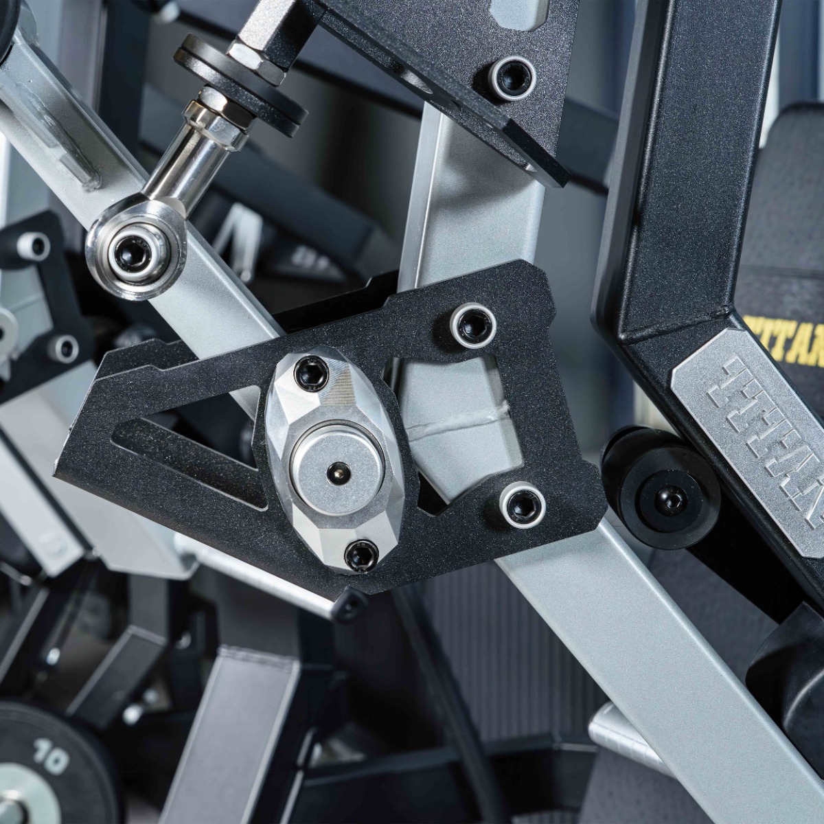 Накопители на подвижных рычагах и статичные для хранения оборудованы кольцами из плотной резины для предотвращения соприкосновения дисков с рамой тренажера и амортизации при размещении свободных весов на накопителях.