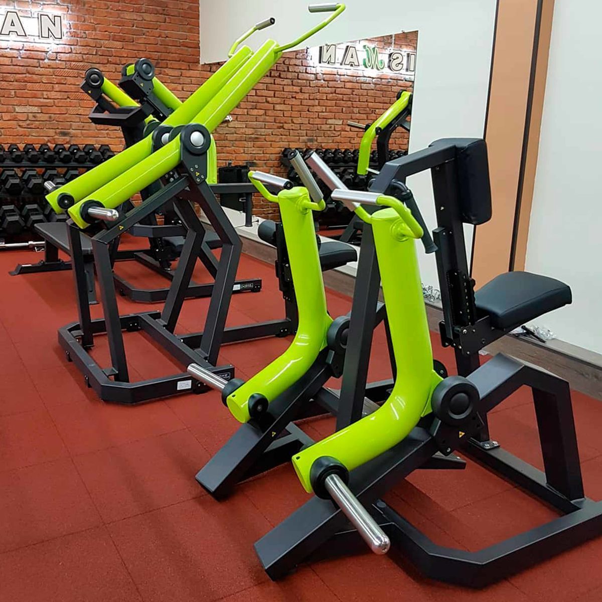Подвижные рычаги выполнены из изогнутого круглого стального профиля без сварных соединений в рабочей зоне, что повышает прочность конструкции и придаёт тренажёру современный и выразительный внешний вид.